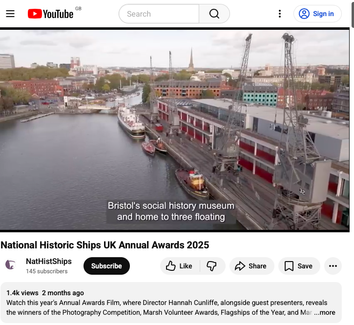 Balmoral and her people were pleased to assist National Historic Ships UK Team on their visit to Bristol and the historic ships of the heritage harbour – by helping to announce their Awards during the visit. The film was released on their UTube video on Wednesday 19th November.