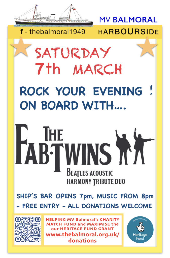 Other open days, some with free to board music evenings, are fairly regular LOOK OUT events on www.facebook.com/thebalmoral1949.